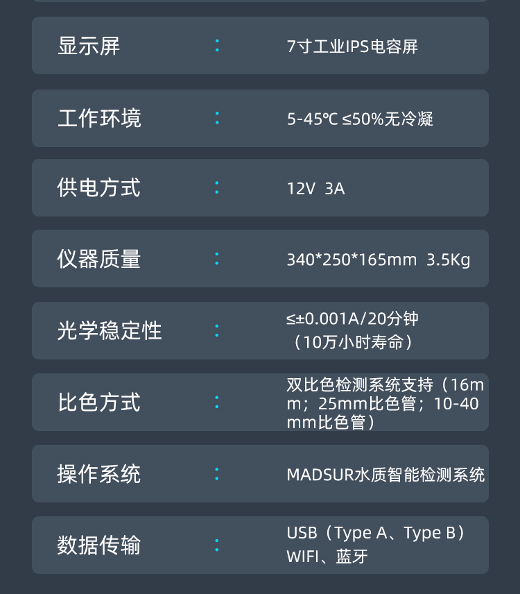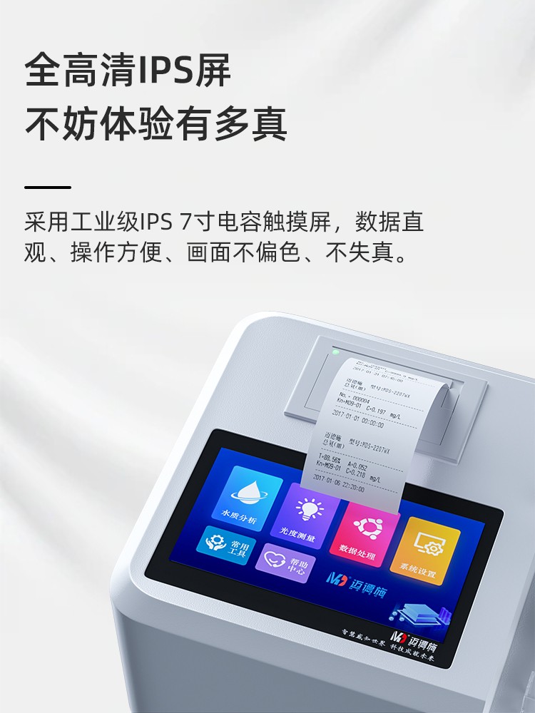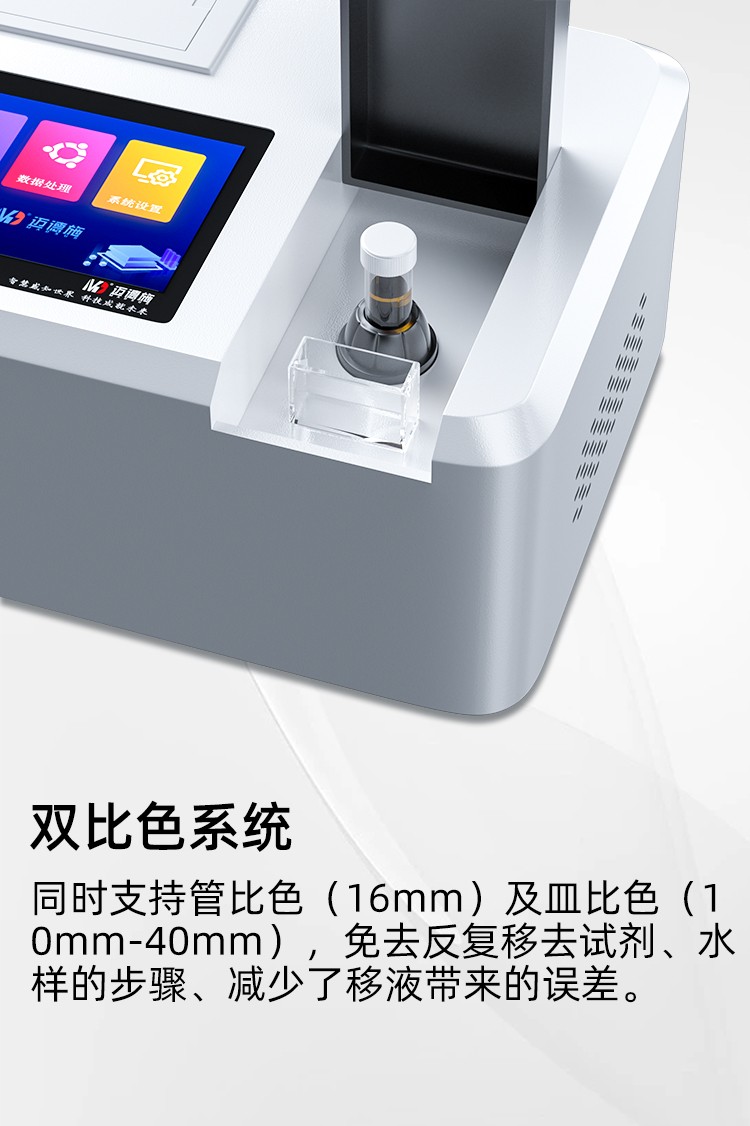 人工智能語音播報提示,可隨意調(diào)節(jié)音量, 使用更方便更 配備112種預(yù)先編程的曲線,曲線數(shù)量990條,可濃度直讀,測量結(jié)果更精密; 具有數(shù)據(jù)存儲功能,可存儲90萬組數(shù)據(jù),并能自由查看; 10寸彩色液晶顯示觸摸屏,全中文操作模式,更便于操作掌握; 儀器自備校準(zhǔn)功能,可根據(jù)標(biāo)準(zhǔn)樣品計算, 并存儲曲線,無需手動制作曲線; 配備USB接口傳輸功能,自帶打印機(jī),可打印當(dāng)前數(shù)據(jù)及存儲的歷史數(shù)據(jù); 采用管比色、皿比色,雙比色系統(tǒng)