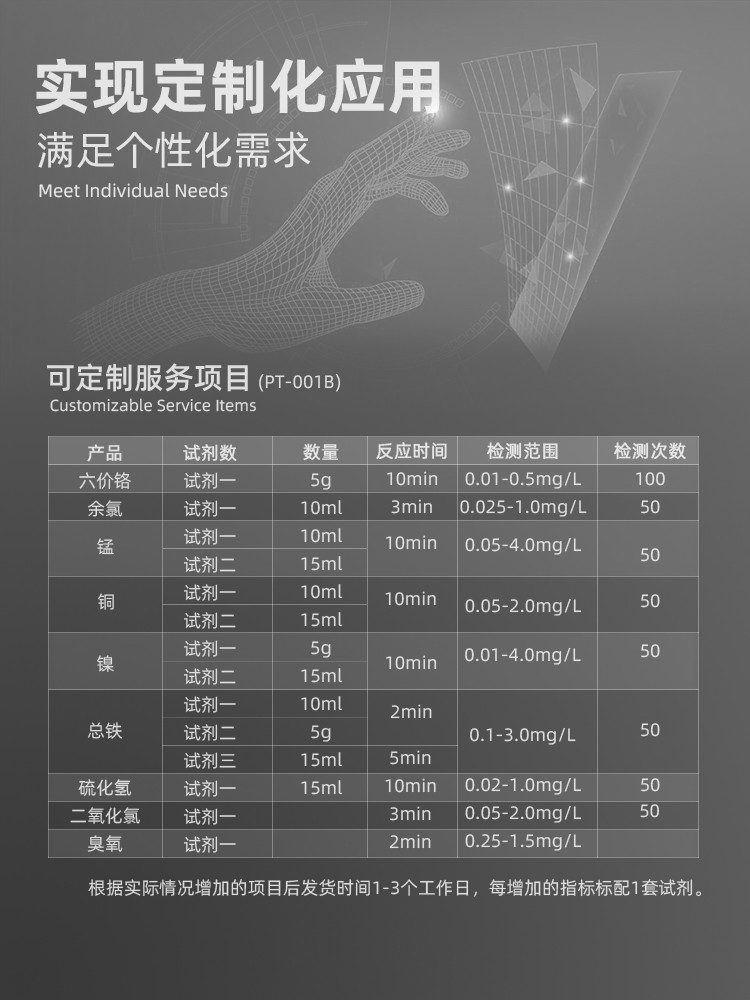 一款適用于工業污水、水產養殖等領域的檢測儀,配合檢測試劑,可“快速、簡單、準確、穩定”進行測量,擁有精美的外觀造型,簡單的操作界面,準確的檢測系統,幫助用戶獲得精細的數據,可更準確、有效的分析水體狀況,提前預防養殖風險,及時避免損失。 數據準確,攜帶方便,檢測快速,操作簡單